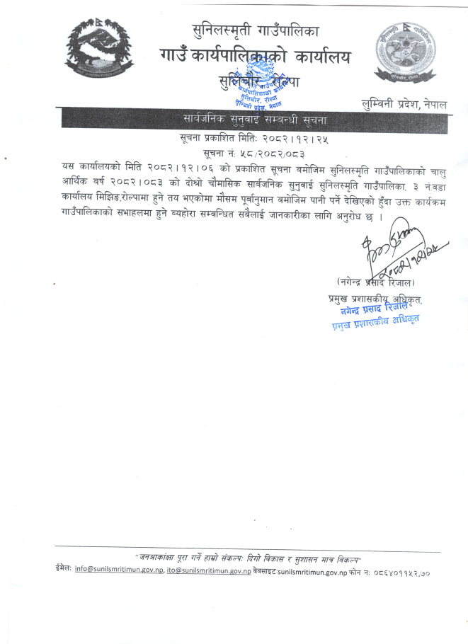 » १२।२५ सार्बजनिक सुनुवाई सम्बन्धी सूचना ।