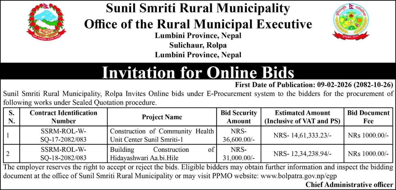 सार्वजनिक खरिद/बोलपत्र सूचना